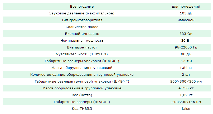 Конструкция акустической системы предусматривает установку внутри помещений. Материал корпуса: пластик, цвет корпуса - белый. Защитная решетка покрыта специальным антикоррозийным покрытием. Инсталляция: крепление к стене при помощи нового шарнирного кронштейна, упрощающего установку громкоговорителя. Возможность работы на линиях напряжением 70 и 100 В.