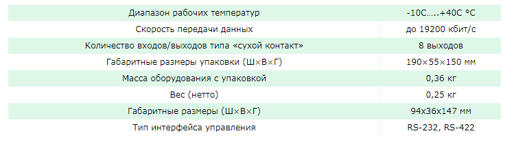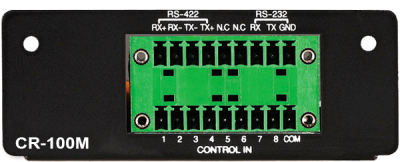 Интерфейсный модуль опционально может быть установлен в блок оптоэлектронного преобразования FRA-108S для приема по волоконно-оптической линии сигналов управления в виде 'сухих контактов' или данных по интерфейсу RS-232, RS-422.