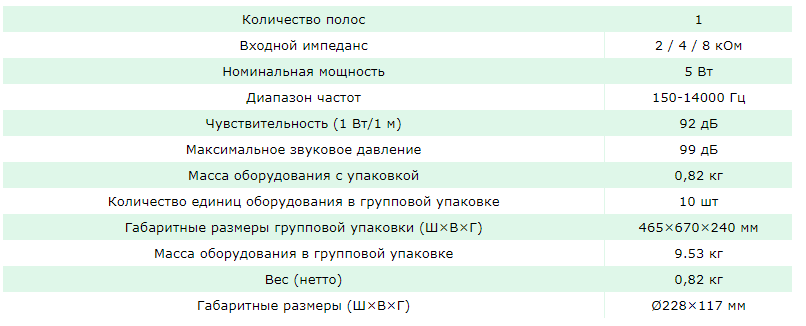 Конструкция устройства рассчитана на внутреннюю установку в подвесных потолках. Материал декоративной решетки - сталь, цвет декоративной решетки - белый. Возможность работы на линиях напряжением 70 и 100 В.