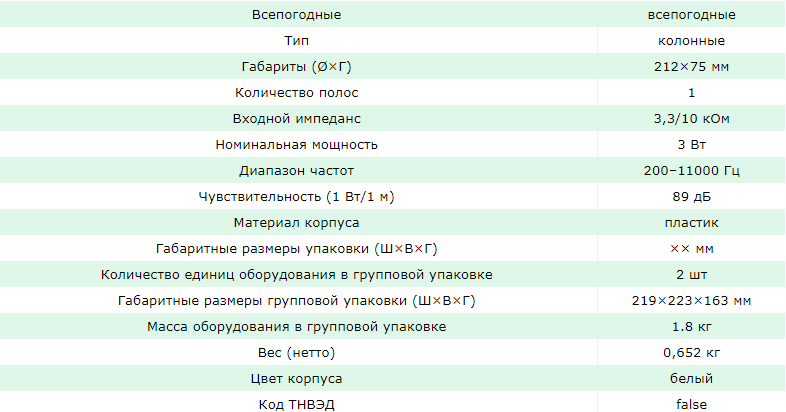 Конструкция громкоговорителя рассчитана на внутреннюю или уличную установку. При уличной установке желательно обеспечить защиту громкоговорителя от прямого попадания атмосферных осадков. Исполнение: влагозащищенное. Материал - пластик, цвет корпуса - слоновая кость. Инсталляция: поворотный кронштейн входит в комплект поставки и обеспечивает ориентацию громкоговорителя в вертикальной и горизонтальной плоскостях. Возможность работы на линиях напряжением 70 и 100 В.