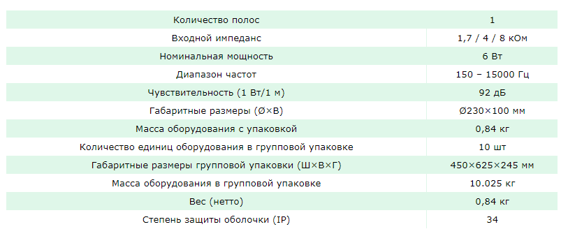 Конструкция устройства рассчитана на внутреннюю установку в подвесных потолках. Материал декоративной решетки - сталь, цвет декоративной решетки - светло-серый. Возможность работы на линиях напряжением 70 и 100 В.