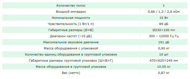 Акустическая система предназначена для воспроизведения речевых сообщений и музыкальных программ в трансляционных сетях и системах оповещения.