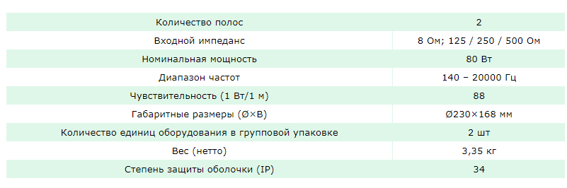 Громкоговоритель потолочный, 2-полосный, 80 Вт, 88 дБ, 140...20000 Гц