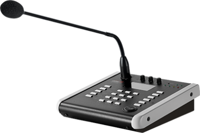 В устройстве предусмотрены несколько вариантов сигнала гонга, который можно транслировать для привлечения внимания слушателей перед объявлением или после него. Дополнительный линейный вход с собственным регулятором усиления позволяет с помощью микрофонной панели воспроизводить в выбранных зонах сигналы, например, от MP3-проигрывателя.