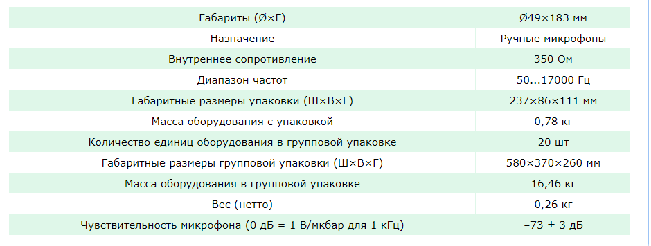 Устройство обладает суперкардиоидной диаграммой направленности, высокой чувствительностью и равномерной амплитудно-частотной характеристикой, имеет в своем составе динамический преобразователь, прочный металлический корпус с разъемом XLR male и ползунковым выключателем. В комплект входит микрофонный корд (XLR male - XLR female, 5 м). Вариант исполнения устройства - ручной.