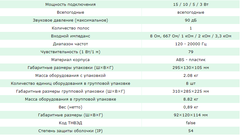 Громкоговоритель предназначен для подключения в линию 70 или 100 В, дополнительно имеет возможность подключения к низкоомному выходу усилителя (8 Ом).