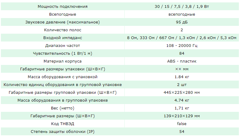 Громкоговоритель предназначен для подключения в линию 70 или 100 В, дополнительно имеет возможность подключения к низкоомному выходу усилителя (8 Ом).