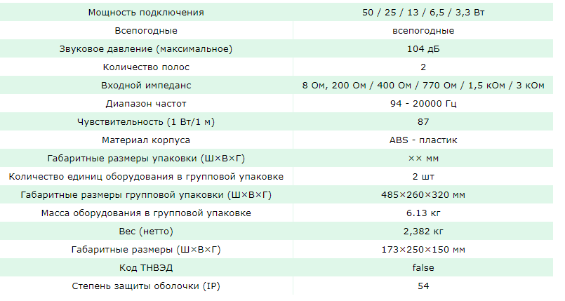Громкоговоритель предназначен для подключения в линию 70 или 100 В, дополнительно имеет возможность подключения к низкоомному выходу усилителя (8 Ом)